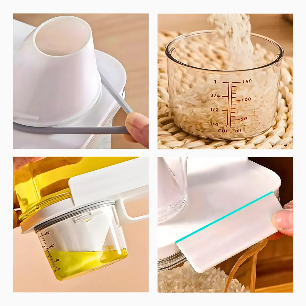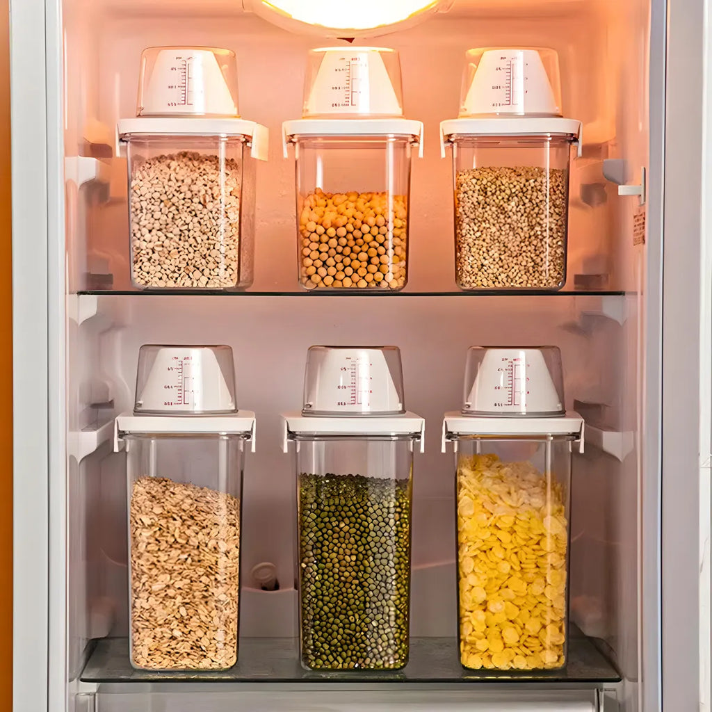 Recipiente Hermético Organizador para Armazenamentos com Copo de Medição - Conjunto de 2 Recipientes